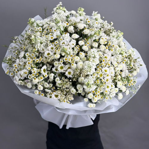 Букет "Эдем" из хризантем, маттиол и ромашек